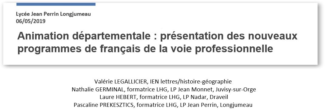 - Présentation des nouveaux programmes en français CAP et BAC (Horaires, objectifs et finalités, architecture, priorités, exemple de mise en oeuvre...).