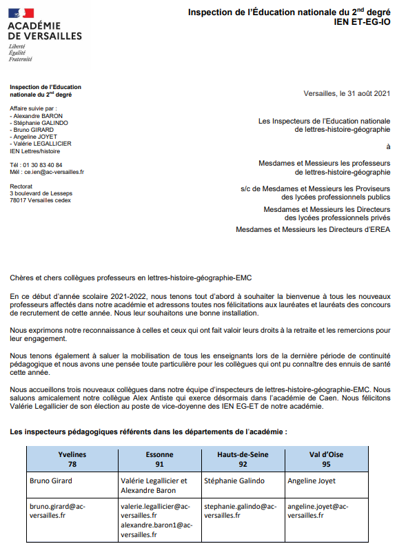 Chères et chers collègues professeurs en lettres-histoire-géographie-EMC