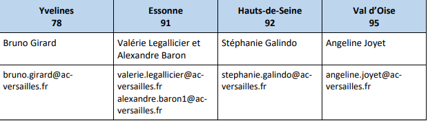Les inspecteurs pédagogiques référents dans les départements de l’académie :